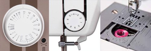 Einfache Stichauswahl mit Wahlknopf, Einfaches Einstellen der Fadenspannung, Komfortables Einsetzen der Spule