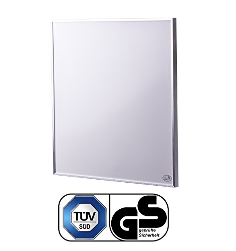 Es handelt sich um eine Fern Infrarotheizung 300 Watt Leistung mit Thermostat. Farbe: Weiß direkt vom Hersteller. Die Serie Elegance Heizung passt optisch zu jedem Raum und jeder Ausstattung, da sie an einer Wand praktisch unsichtbar wirkt und sorgt dort für angenehme und behagliche Wärme. Benutzen Sie ein Thermostat um noch effizienter die Vorzüge einer Infrarot Keramikheizung zu nutzen. Dieser hilft Ihnen, die Temperatur im Raum konstant zu halten. Sie finden Thermostate bei unseren anderen Auktionen. Maße: 500 / 600 / 10 mm. Oberflächentemperatur: 75-105°C. Gewicht: 4 kg. Schutzklasse: IP44. Beheizbare Raumgröße: 3-12 m², abhängig von Isolationswerten und räumlichen Einflüsse. Einflüsse darauf nehmen Anzahl der Fenster, Dachgeschoss, wieviel Aussenwände…. Die Heizung verfügt über 2 Überhitzungsschutzsicherungen und sorgt so für hohe Sicherheit. Es wird Wandbefestigungsmaterial mitgeliefert. INFRAROTHEIZUNG DIE VORTEILE — sehr günstig!!! —Fast unsichtbarer Infrarotheizung —>Heizung erzeugt gesundes Raumklima —>Elektroheizung – günstiges heizen gegenüber einer konventioneller Heizung sowie geringe Anschaffungs und Instandhaltungskosten —>Die Infrarotheizung ist einfach zu installieren, kein Umbau notwendig, —>Keine Schimmelpilz Bildung, trockene Wände = Wandheizung & Deckenheizung —>Die Infrarotheizung wirbelt keinen Staub auf – geeignet für Asthmatiker & Allergiker —>einfache & schnelle installation, individuell wo sie gebraucht wird. INFRAROTHEIZUNG – DIE GÜNSTIGE ALTERNATIVE ZUR HERKÖMMLICHEN HEIZUNG Die Infrarotheizung ist Wegen steigenden Öl und Gaspreisen & die vielfältigen Einsatzmöglichkeiten, die wohl genialste und attraktivste Lösung für eine warme Umgebung. Für drinnen draußen (genaue Info, siehe unten) Die Infrarotheizung kann sowohl als Zusatz – Heizung, oder als vollwertiges Heizsystem Funktionieren. Unter www.tuev-sued.de/ps-zert können Sie unsere Zertifizierung unsere Heizsysteme einsehen.