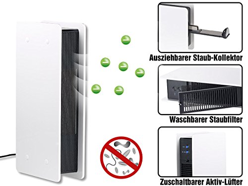 Beseitigt selbst kleinste Schadstoff-Partikel: Bereinigen Sie Luft wirkungsvoll von Hausstaub, Bakterien, Keimen, Milben, Zigarettenrauch u.v.m. Per zuschaltbarem Lüfter erhöhen Sie die Wirkung auf Knopfdruck!