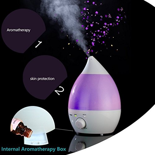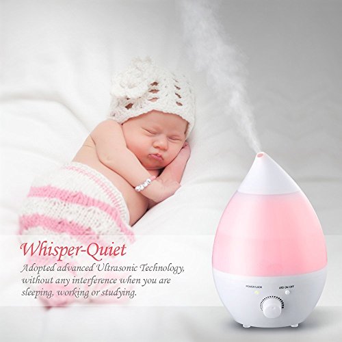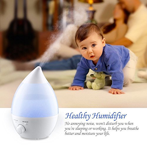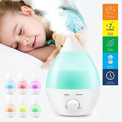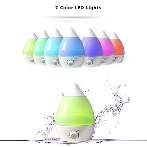 Built in 7 Color LED Night Light (Purple, Indigo, Blue, Green, Yellow, Orange, Red). Set your favorite color or choose color turn, this will make it the perfect humidifier for your bedroom.Turns itself off automatically when the water has been completed.