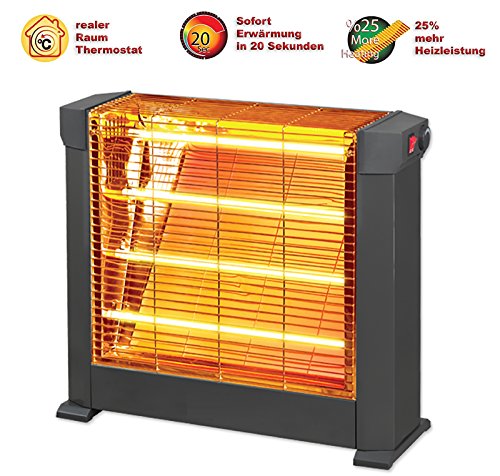 Qualitativ hochwertige Quarz-Infrarotheizung mit 2200 Watt Ob als Heizunterstützung im Wintergarten, als Wärmespender über dem Wickeltisch, als Bauheizung, oder als Hilfe zur schnelleren Trocknung z.b. bei Spachtel- und Lackierarbeiten oder einfach nur im Haushalt.