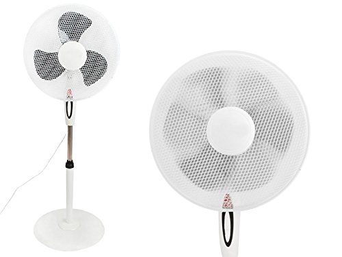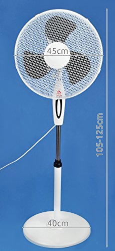 Eigenschaften: integriertes Licht, hilft den Ventilator in der Nacht zu erkennen, 3 Geschwindigkeiten, Drehfunktion nach links und rechts 180°, Durchmesser des Ventilators: 45cm, Regulierbare Höhe: 105-125 cm, Leistung: 45W, AC 220 50Hz, Länge des Kabels: 160cm,